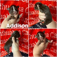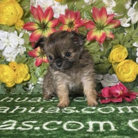 All of Our babies are Registered & hand raised in our home. I make homemade food every week. Fed 3 times a day. Also, Hard all natural food & water available always. Zero food coloring & toxins.They are also Vaccinated & wormed routinely. Our family strives to create the most amazing Long & Short Coat Chihuahuas. Outstanding personality, shape, and coloring is what we pride ourselves in. You can text, call, & FaceTime me anytime. Located in Eastern Oklahoma & we can also Deliver. Thank you.
